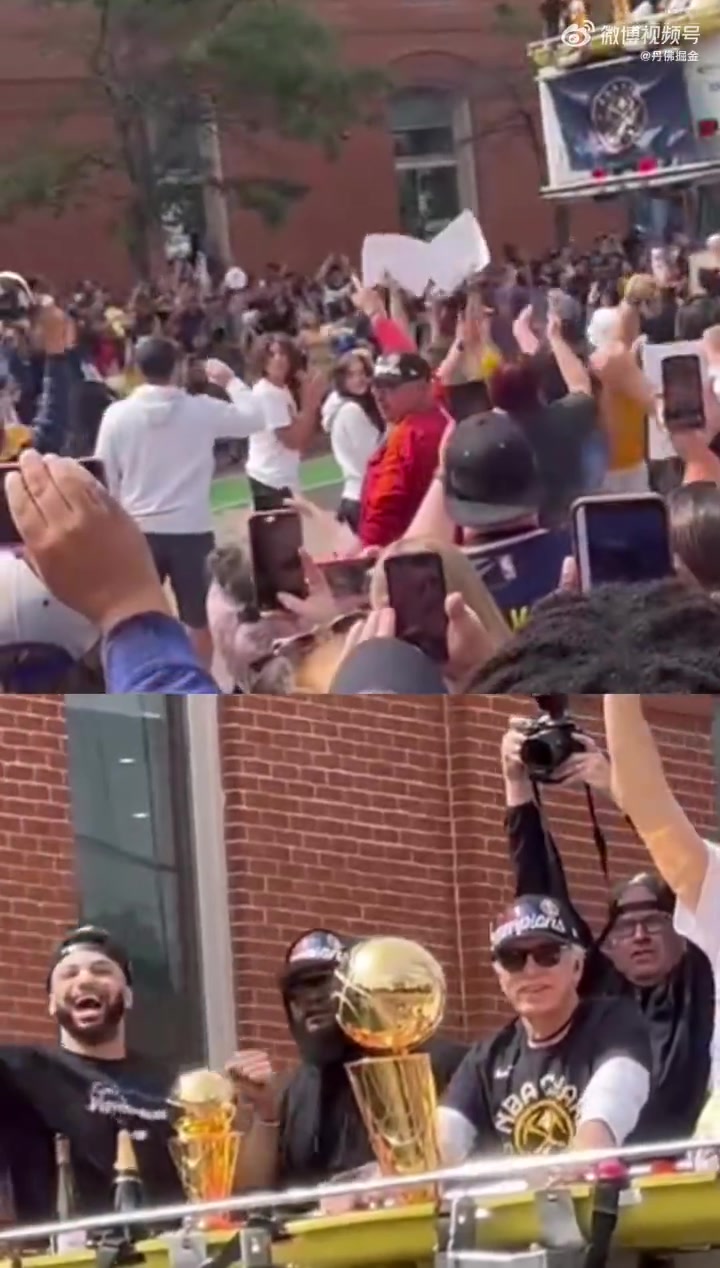 两座金杯闪闪发光穆雷和约基奇夺冠游行上一人带一座奖杯